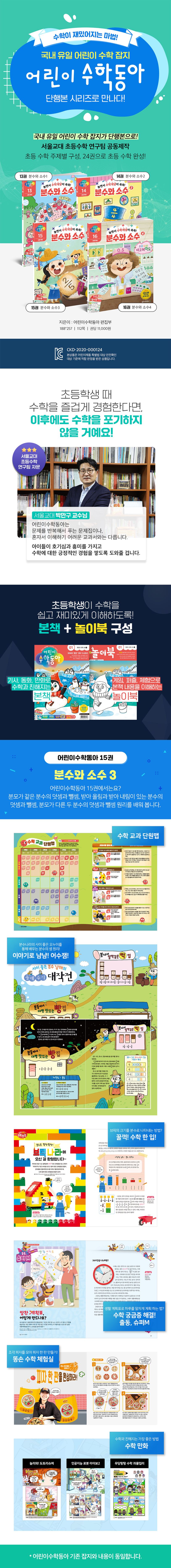 초등 교과에서 다루는 수학 개념을 친근한 일러스트와 술술 읽히는 스토리텔링으로 만난다. 생활 속 수학 이야기, 흥미진진한 퍼즐·게임, 깔깔 웃는 수학 만화, 만들면서 체험하는 수학 놀이 등 쉽고 재밌는 수학을 풍성하게 소개한다. 본책과 분리되는 놀이북은 직접 오려서 수학 놀이를 할 수 있는 도안이 수록돼 있다.