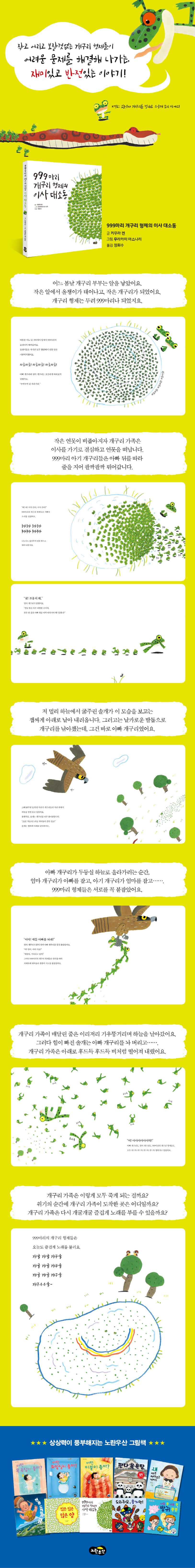 어느 봄날 개구리 부부가 알을 낳았어요. 알들은 금세 자라서 올챙이가 되고, 작은 개구리가 되었지요. 그런데 놀랍게도 개구리 형제는 999마리나 되었답니다. 하루가 다르게 무럭무럭 자라는 개구리 형제들 덕분에 개구리 부부가 살던 연못은 비좁아졌어요. 개구리 가족은 더 넓은 곳을 찾아 이사 가기로 결단을 내립니다.