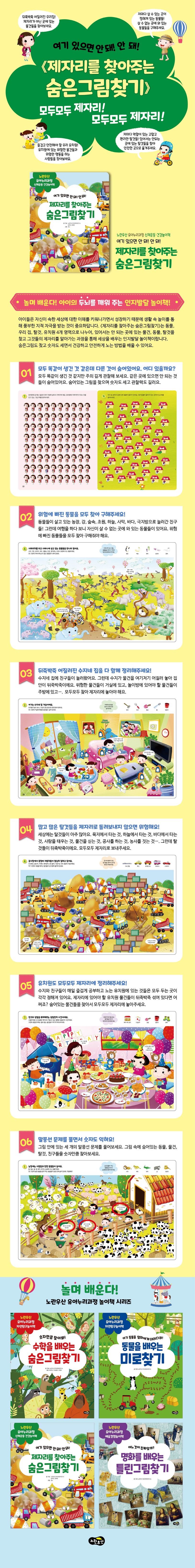 아이들은 자신이 속한 세상에 대한 이해를 키워나가면서 성장합니다. 그래서 생활 속 놀이를 통해 풍부한 지적 자극을 받게 하는 것이 중요합니다. 《제자리를 찾아주는 숨은그림찾기》는 유아누리과정 [신체운동ㆍ건강] 영역의 ‘건강하게 생활하기’와 ‘안전하게 생활하기’ 내용에 맞춰 놀이로 구성한 놀이책입니다.