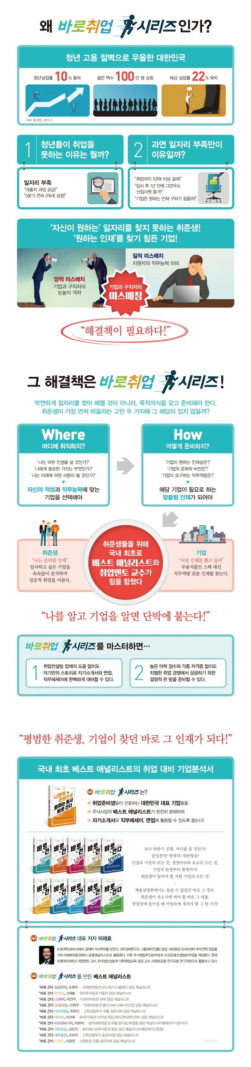「바로취업시리즈-총론서」 제7권 《아모레퍼시픽 편》. 아모레퍼시픽은 해방 직후 국내 1호 화장품 제조사에서 출발해 오늘날 K팝에 버금가는 K뷰티 붐을 일으키며 글로벌 화장품기업으로 명성을 떨치고 있다. ‘에어쿠션’이라는 혁신적인 제품이 탄생할 수 있었던 배경에는 아모레퍼시픽의 기업문화가 있다. 남성화장품, 실버화장품까지 시장이 확장되며 화장품산업의 전망은 매우 밝은 편이다. 이 책을 통해 화장품 산업의 전반적인 환경 즉 시장과 경영 환경 변화 추이와 전략, 만들어 낼 수 있는 미래가치까지 알아볼 수 있다.