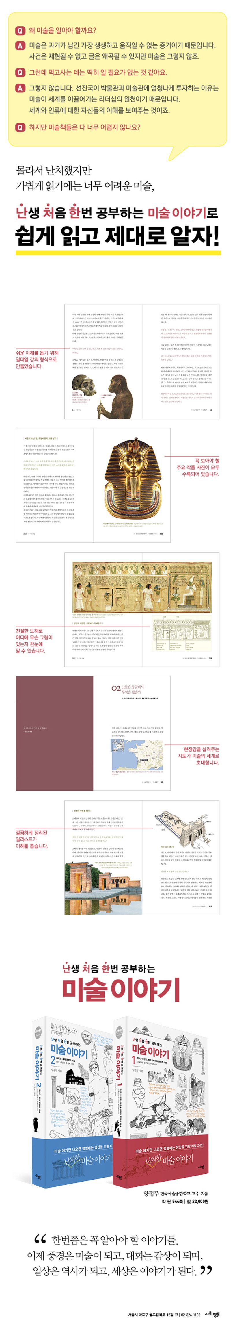 미술을 본다는 것은 그것을 낳은 시대를 마주하는 동시에 미래를 이끌어갈 통찰을 얻을 수 있다는 것이다. 따라서 미술은 과거를 보여주는 창이며 미래를 이끄는 해답이 담겨 있어 모든 학문의 정수가 모인 ‘인문학의 꽃’이라 불린다. 이 책은 그러한 길고 긴 역사를 지닌 미술을 독자의 시선의 흐름에 맞추어 배치한 도판, 엄선한 작품 사진과 일러스트, 의문에 대한 적절한 질문을 통해 독자들에게 쉽게 다가간다.