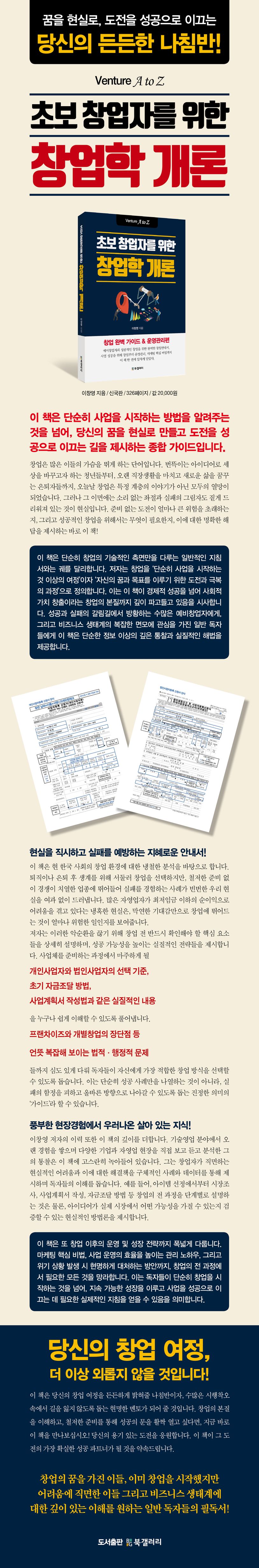초보 창업자를 위한 창업학 개론 (Venture A to Z)