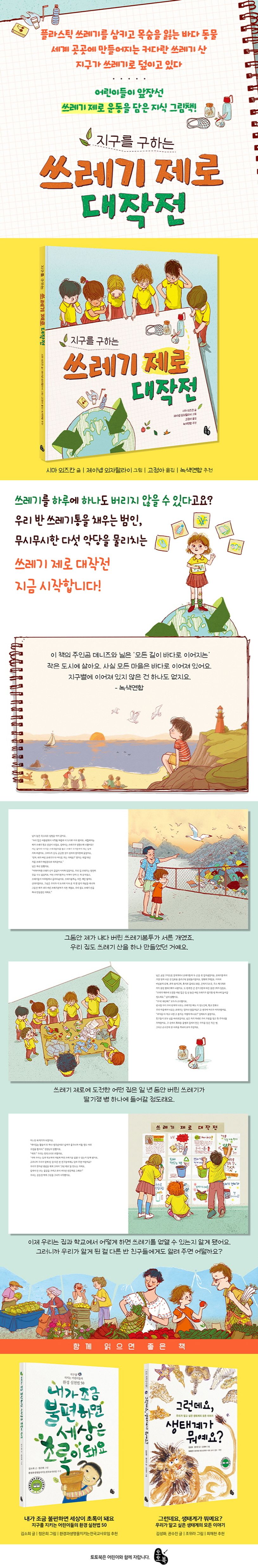 우리가 매일 쓰는 플라스틱 컵을 쌓으면 지구에서 달나라까지 닿는다고 해요. 지구를 뒤덮은 쓰레기를 줄이기 위해 지금 당장 무엇을 할 수 있을까요? 《지구를 구하는 쓰레기 제로 대작전》은 어린이들이 나서서 쓰레기 제로 운동을 펼친 이야기를 담은 지식 그림책이에요. 5학년인 데니즈는 새 친구 닐을 만나 쓰레기를 줄이는 멋진 생활 방식을 배워요. 그리고 같은 반 친구들과 함께 교실 쓰레기통을 텅 비우는 쓰레기 제로 대작전을 펼칩니다. 데니즈와 친구들이 어떤 작전을 펼쳤는지 들어 볼까요?