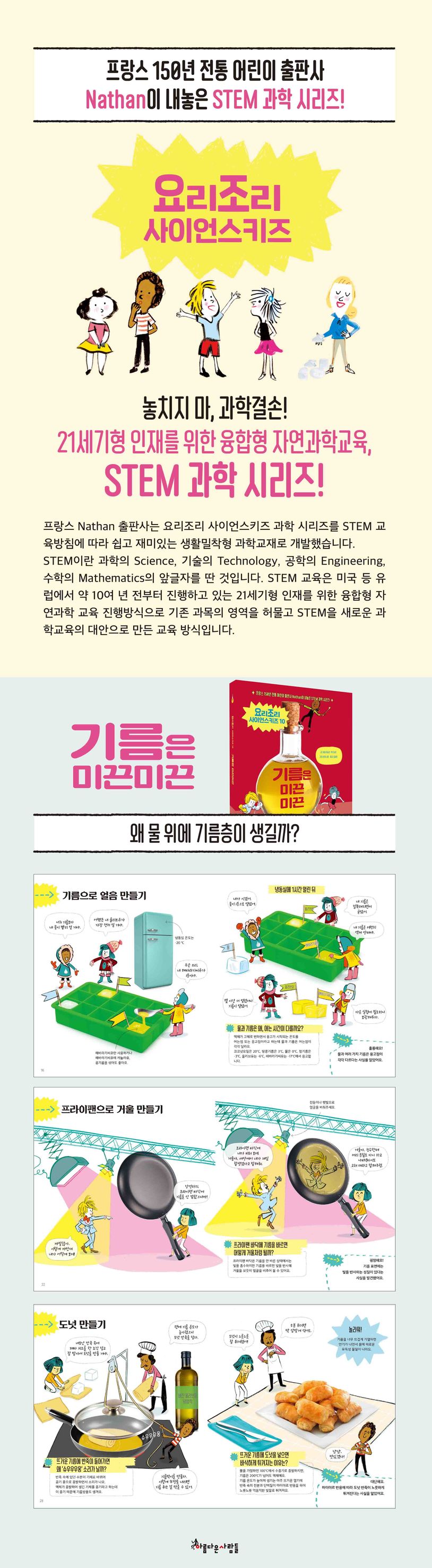 《기름은 미끈미끈》에서는 기름이 어떤 특성을 가졌는지 살펴보고 어떤 식물에서 기름을 짜내는지도 함께 알아봅니다. 기름은 물보다 가벼운지 무거운지에 관한 실험도 합니다.