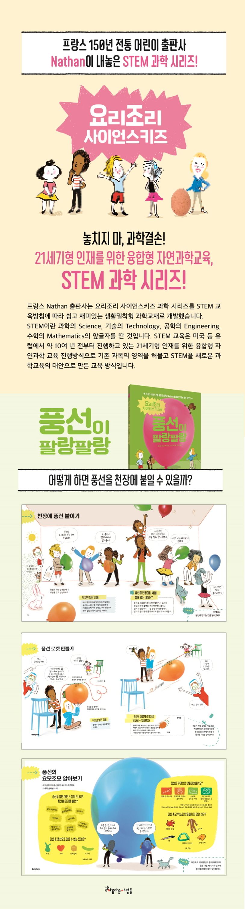 『풍선이 팔랑팔랑』은 프랑스 150년 전통 어린이 출판사 Nathan이 내놓은 STEM 과학 시리즈로 21세기형 인재를 위한 융합형 자연과학교육, 쉽고 재미있는 생활 밀착형 과학교재다.