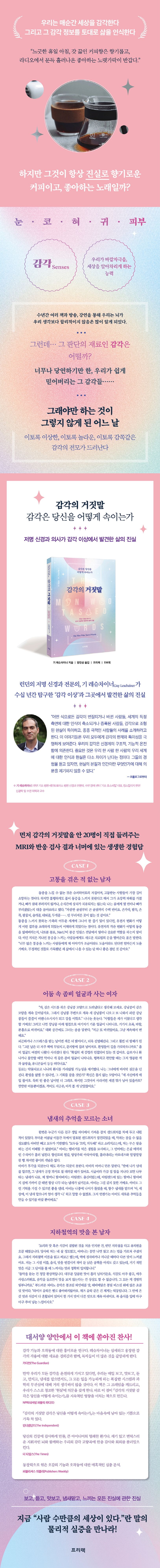 또한 이는 연구 사례집이나 논문이 아니다. 이 책에서 의사는 환자의 MRI나 반응 검사 결과만으로 말하지 않는다. 폴, 니나, 던, 빌, 제임스…… 의사는 환자이기 이전에 사랑과 꿈을 가진 인간인 그들 개개인의 삶을 주의 깊게 청취하고, 따듯한 마음과 아름다운 언어에 실어 전한다. 마치 그들의 거실에 초대를 받은 것처럼, 감각의 거짓말을 맞닥뜨린 이들의 세상이 어떻게 그야말로 혼돈에 빠져들었는지를 직접 들을 수 있다. 이 모두가 거대한 부재 혹은 상실에서 끝내 다시 일어서는 영웅담이자, 지식의 공백을 메우는 하나의 발견이다. 그래야만 하는 것이 그렇지 않게 된 어느 날, 삶의 진실은 한 겹 더 명료해질 것이다.