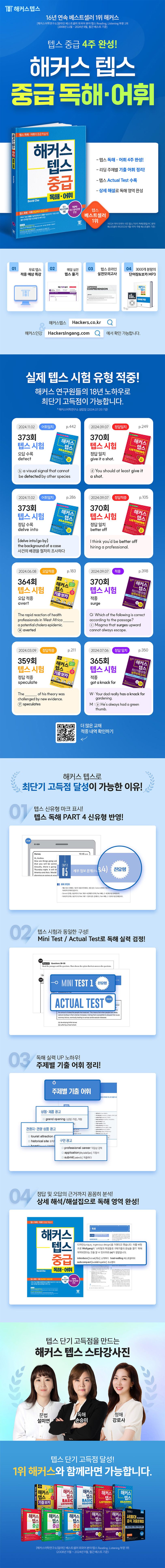 〈해커스 텝스 중급 독해 어휘〉와 함께라면 텝스 독해 어휘 중급에서 상급으로 도약할 수 있습니다.