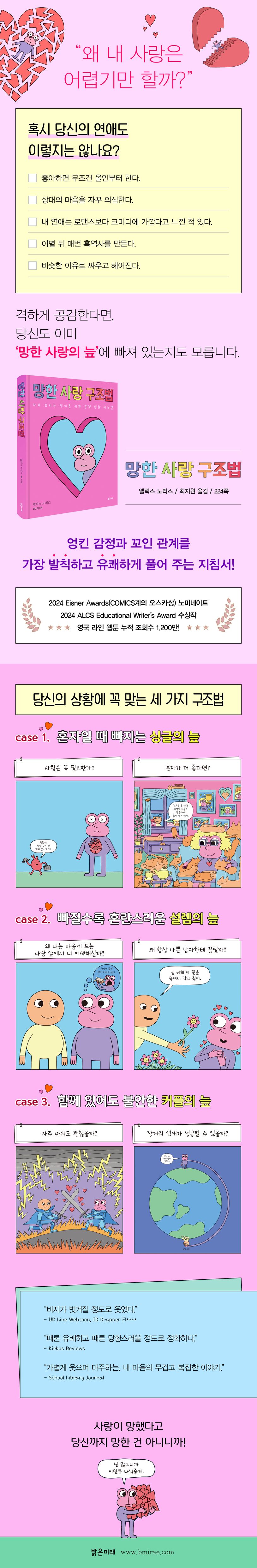 이 책이 ‘망한 사랑의 늪’에서 빠져나올 유쾌한 구조법이 되어줄 것이다.