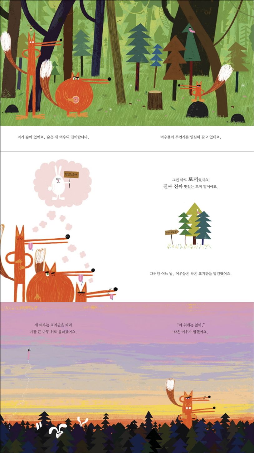 숲은 토끼를 찾아다니는 세 여우의 집이랍니다.