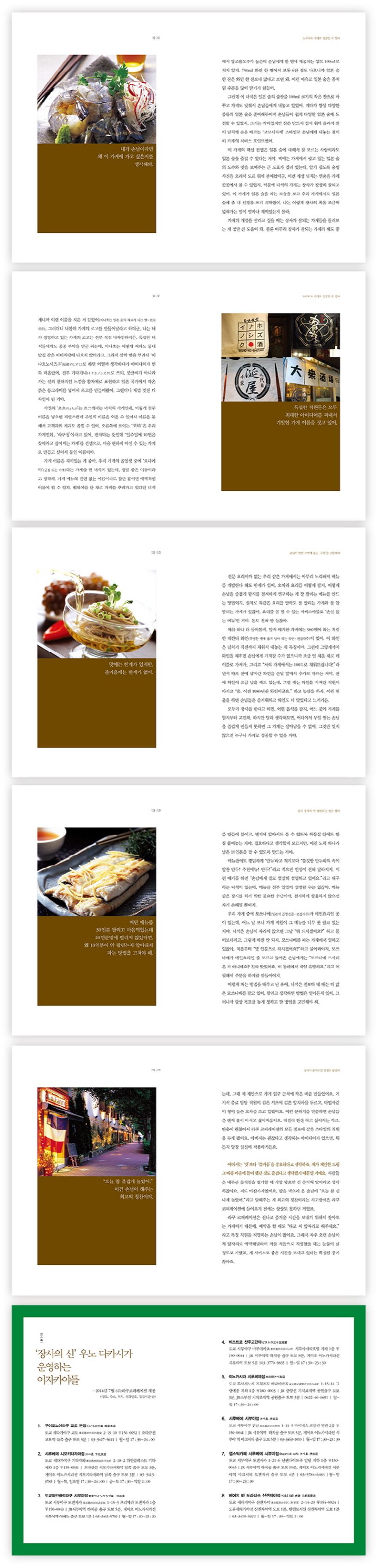TV 속 맛집을 보면, 대박난 가게들은 도시와 떨어진 외진 곳에 있는 경우가 많다. 그 멀리까지 사람들을 불러 모으는 힘이 맛있는 음식에도 있겠지만, 그 사장님들에겐 공통적인 특징이 있다. 모두 즐겁고 신나게 일한다는 사실. 하나같이 맛있는 음식을 먹고 좋아하는 손님들을 보면 힘든 줄 모르고 일한다는 그들을 보면서, 성공하는 장사의 비법은 일본이든 한국이든 '사람'을 우선으로 하는 마음과 '즐거움'이라는 사실을 깨닫는다.