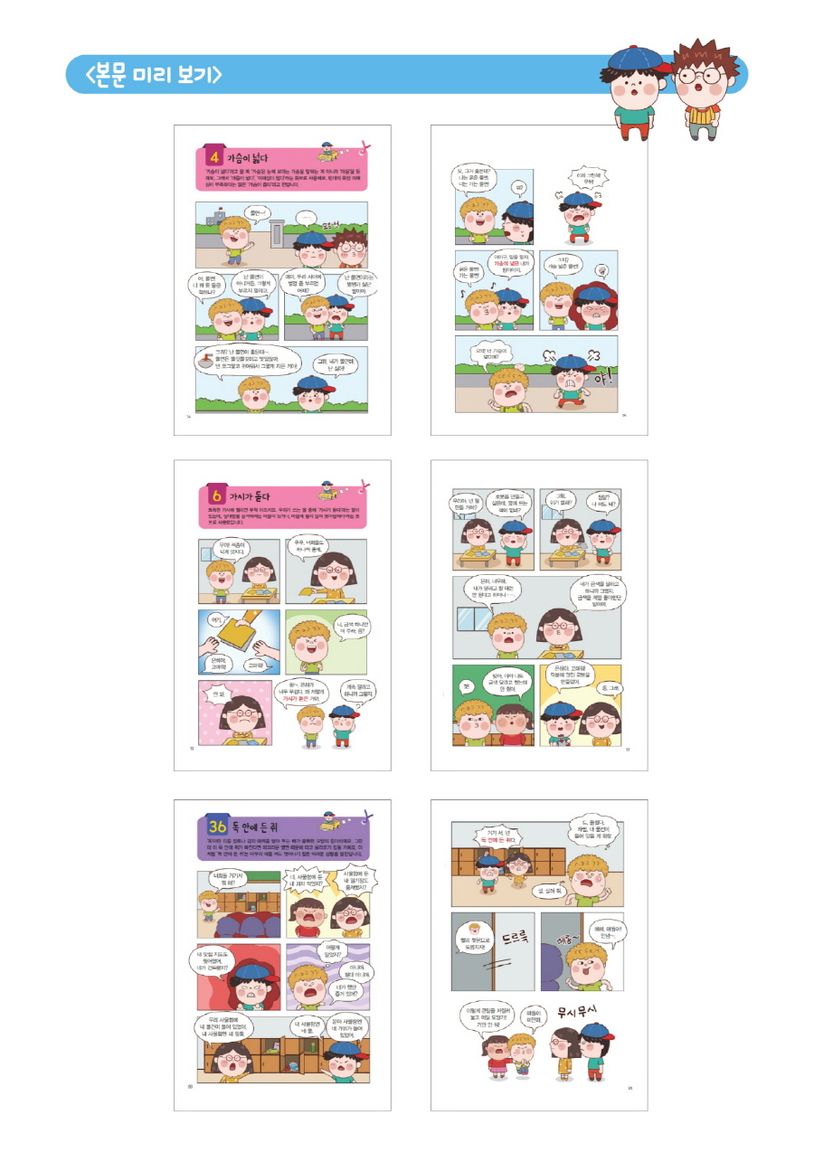 특히 바쁜 학업으로 인해 시간을 쪼개야 하는 아이들에게 짧은 시간에 집중하여 책을 읽을 수 있도록, 재미 요소와 공감 스토리로 구성했습니다. 특별히 일상생활에서 꼭 알아야 할 관용어를 코믹 만화로 구성해 엮어서 학습이 흥미로울 수밖에 없습니다. 재미와 학습을 동시에 갖춘 학습 도서 ‘알찬 관용어’를 만나 보세요.