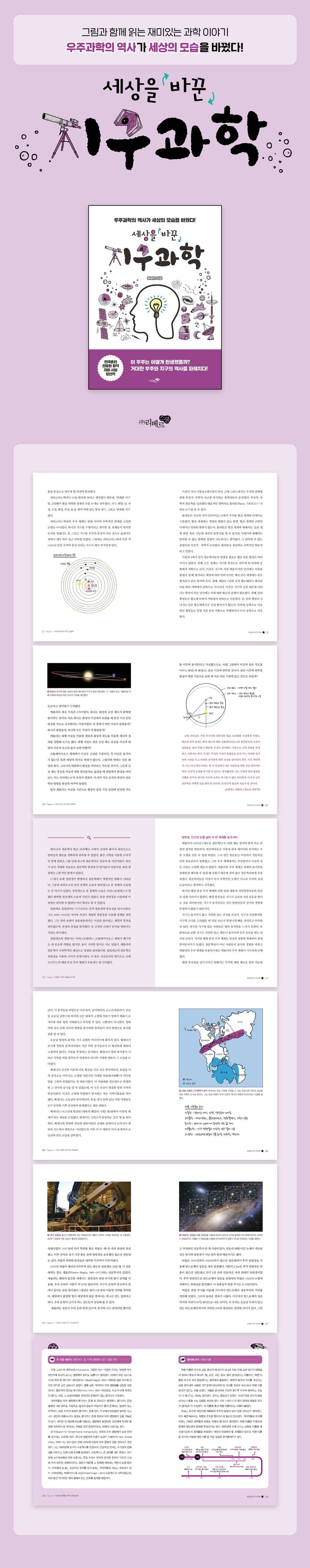 ‘과학’이라는 분야는 절대적이고 변하지 않는 진리를 품고 있는 것처럼 여겨진다. 하지만 학문은 언제나 다양한 이론이 등장하면 변화한다. 자연과학도 예외가 아니다. 과학 시간에 배우는 과학 개념은 많은 과학자가 세상을 이해하는 방식을 두고 서로 논쟁하고 검증해 정리한 것이다. 《세상을 바꾼 지구과학》에서 저자는 우주 이론과 지구과학의 역사를 통해 과학 개념을 쉽고 재미있게 익힐 수 있도록 했다. 또한 책에 실린 다양한 시각 자료는 독자가 천문 현상을 여러 방식으로 이해하도록 돕는다.