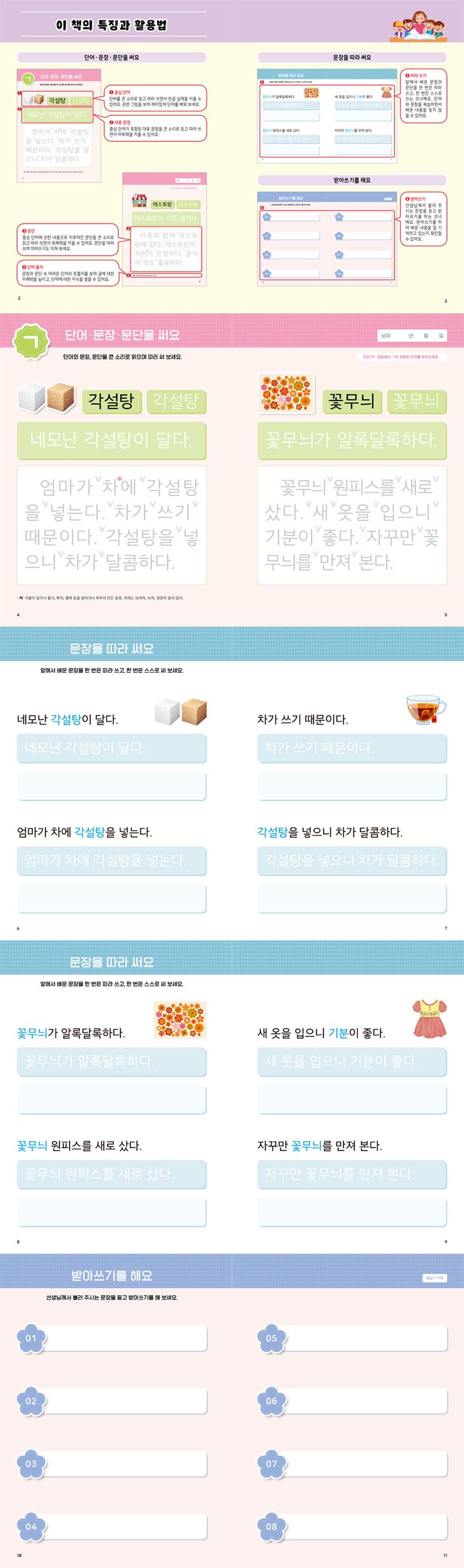 『우리 아이 뇌를 깨우는 받아쓰기: 문단편』은 여러 문장으로 이루어진 문단을 익히고 받아쓰기하는 한글 학습 워크북입니다. 다양한 단어와 문장을 접하며 어휘력을 기르고, 문단 단위의 글을 읽으며 독해력을 키울 수 있습니다. 단어, 문장, 문단을 직접 써봄으로써 성취감을 느끼고, 초등학교에 입학해서 하게 될 받아쓰기를 미리 연습해볼 수 있습니다. ‘단어편-문장편-문단편’으로 이루어진 받아쓰기 시리즈를 통해 어휘에서 독해로 이어지는 체계적인 한글 학습을 할 수 있습니다.