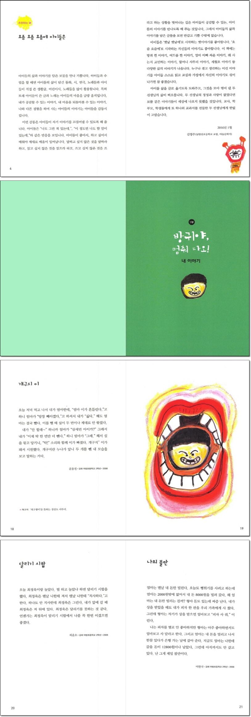 까르르 우당탕 재잘재잘 시끌벅적솔직하고 당당한 우리 아이들의 이야기『내 꿈이 어때서!』. 전국의 초등학생 아이들이 쓴 글을 전국초등국어교과모임 선생님들이 한데 엮은 생활글 모음집입니다. 아이들이 학교, 집, 일상의 여러 곳에서 보고 듣고 느낀 것들, 현실의 고민들을 솔직하게 털어 놓은 글을 모았습니다. 62명의 아이들이 펼친 80편의 글은 아이들만이 할 수 있는 진솔하면서도 동심 어린 이야기로 가득 채워져 있습니다.