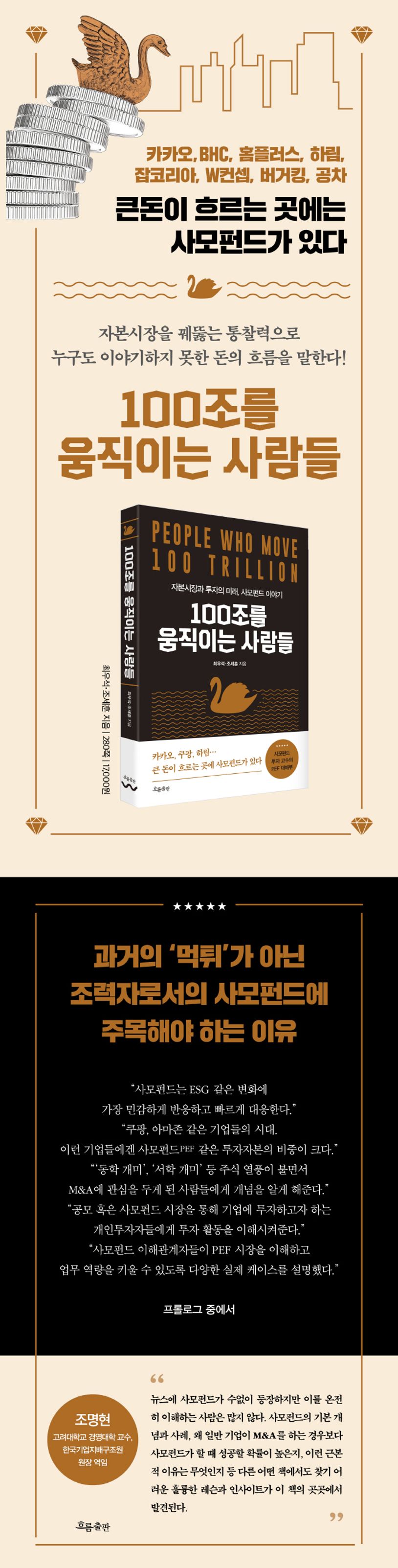 ‘사모펀드’에 대해 뉴스에서 수없이 다루고 있지만 이를 자세히 아는 이는 많지 않다. 누구도 쉽게 이야기하지 않았던 국내 사모펀드를 자본시장을 꿰뚫는 통찰력으로 일목요연하게 정리한 『100조를 움직이는 사람들』이 출간되었다.