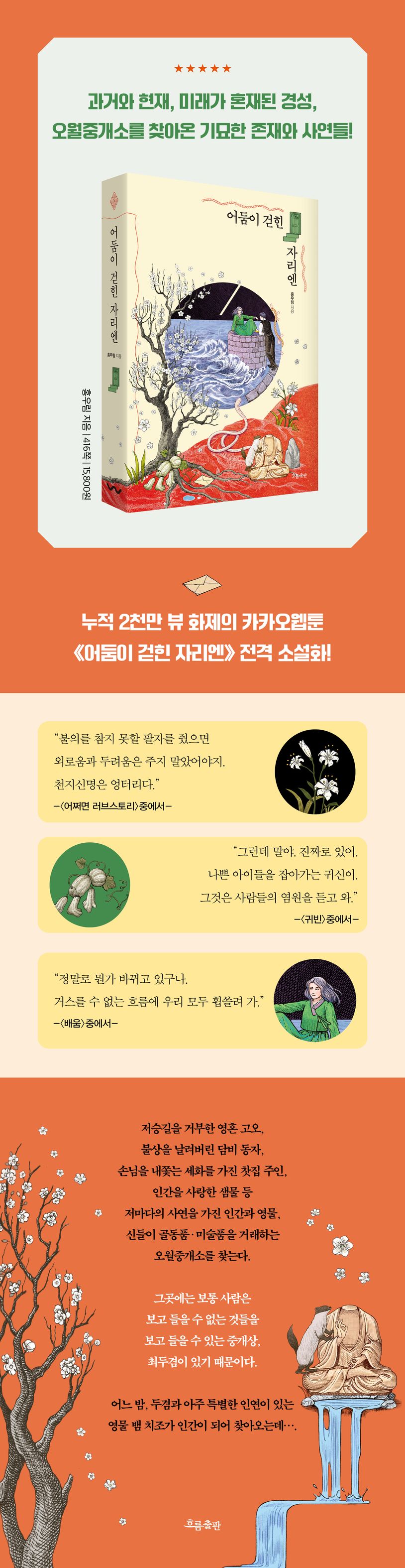 저자 홍우림은 카카오웹툰 누적 조회수 1억 뷰의 문제작 『묘진전』을 쓰고 그린 젤리빈 작가로, 이 소설은 저자가 카카오웹툰에서 연재한 『어둠이 걷힌 자리엔』을 직접 각색한 작품이다. 웹툰으로 다 표현해내지 못한 인물들의 감정과 이야기를 글을 통해 조금 더 깊이 있게 담아냈으며, 원작에는 없는 이야기 「감기지 않는 눈」을 새롭게 써넣었다.