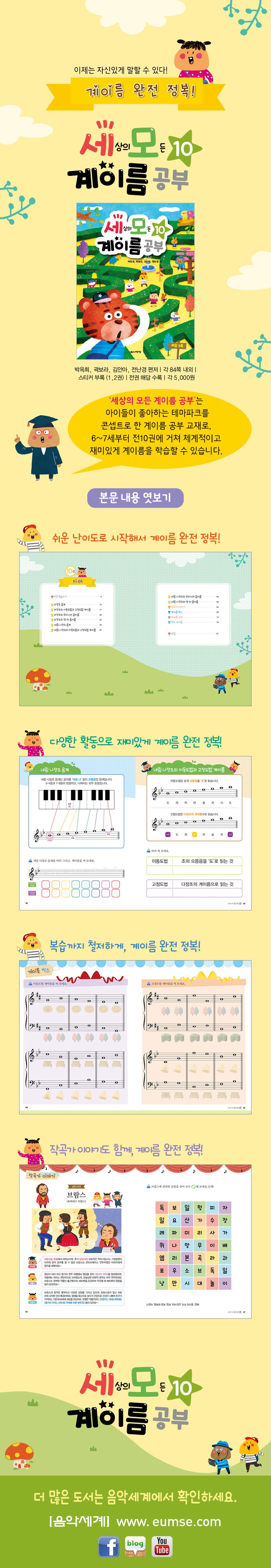 세상의 모든 시리즈인 이 교재는 점점 쉬워지는 현 피아노 학원 실정에 맞게 6~7세부터 사용 가능한 계이름 공부 교재로, 1~10권에 거쳐 체계적으로 계이름을 배울 수 있는 교재입니다.