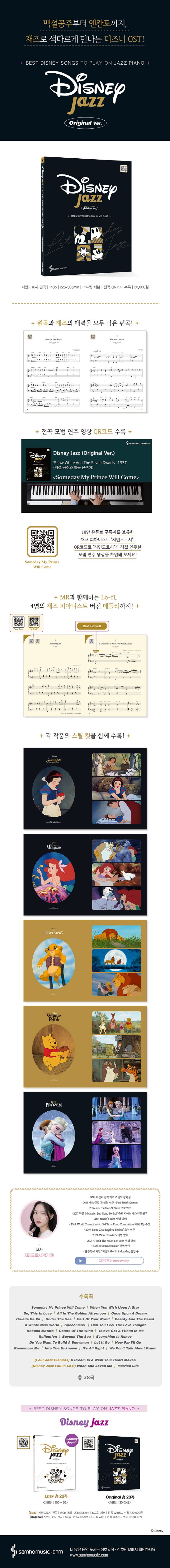 『Disney Jazz (Original Ver.)』은 디즈니 작품의 베스트 OST 곡들을 모아 재즈로 편곡하여 수록한 연주곡집이다. 디즈니 하면 대표적으로 떠오르는 인어공주 OST ‘Under The Sea’, 겨울왕국 OST ‘Let It Go’부터 2021년 작인 엔칸토 OST ‘We Don't Talk About Bruno’까지 총 28곡이 수록되었다. 원곡에 재즈 피아니스트 ‘지민도로시’만의 재즈 편곡이 더해져 색다르게 연주할 수 있다. 4명의 재즈 피아니스트 버전 메들리 및 Lo-fi MR이 포함된 수록곡까지 있어 디즈니 OST를 더욱 다양하게 즐길 수 있다. 작품마다 스틸 컷이 포함되어 있으며, 저자의 전곡 모범 연주 영상을 QR코드로 확인할 수 있다.