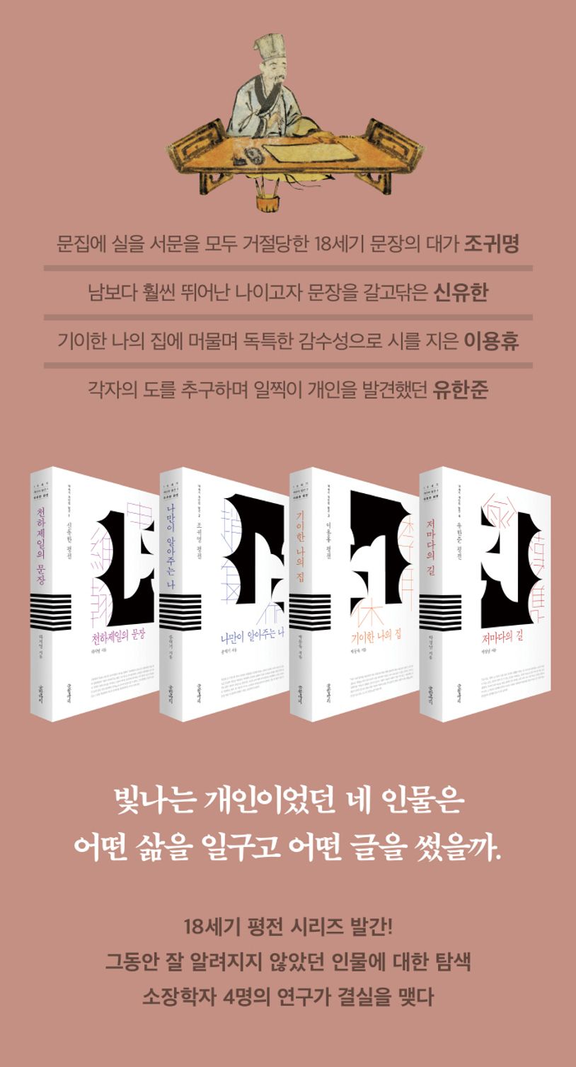 혜환 이용휴는 연암 박지원과 함께 이름이 오르내렸을 정도로 문제적인 인물이었다. (…) 그는 자기다운 글을 자기만의 형식으로 직접 써야 한다고 생각했다. 그 바탕에는 엄청난 독서가 숨어 있었다. 기이한 책들을 구해서 수장收藏하고 끊임없이 책을 읽었다. 그의 글들은 기존의 것들을 충실히 이해한 뒤에 얻은 궁극의 성취였다. 달라지기 위해서 달라진 것이 아니라, 같아지다 보니 끝내 달라져버렸다. _「머리말」
