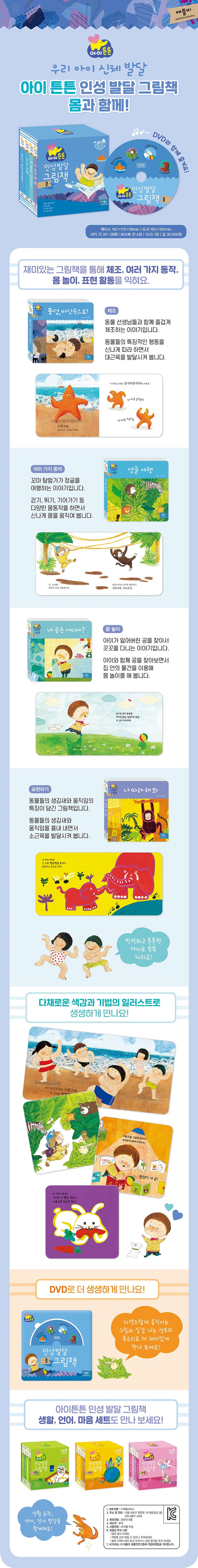 [아이튼튼 인성 발달 그림책]은 애플비에서 정성을 다해 준비한 국내 창작 영유아 생활 그림책 시리즈입니다. 만 1~4세의 유아들이 꼭 길러야 할 올바른 생활 습관, 언어 발달, 정서 발달, 신체 발달의 네 가지 영역을 그림책에 담았습니다. 유아 교육을 전공한 작가들이 아이들의 마음을 담아 글을 쓰고, 국내 최고의 일러스트레이터들이 다채로운 기법으로 재미나게 그림을 그렸지요. 아담한 크기의 견고한 보드북으로 제작되어 오래 두고 보기에 알맞으며, 아이의 안전을 고려하여 모서리를 둥글게 처리하였습니다. 함께 들어 있는 DVD로 생생하게 움직이는 그림과 성우의 연기를 감상할 수 있어 그림책과는 또 다른 즐거움을 맛볼 수 있습니다.