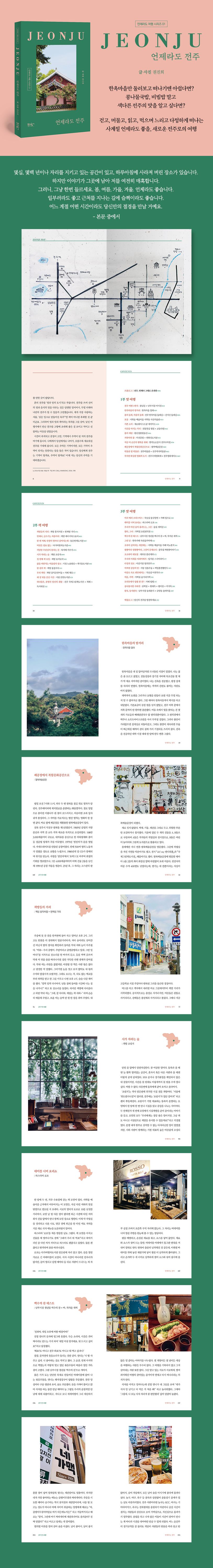 여행은 결국 책을 읽는 일과 닮았다. 골목을 걷는 건 문장을 읽는 것이고, 사람을 만나는 것은 문맥을 이해하는 일이다. 전주는 그런 여행이 가능한 도시다. 저자는 전주에 머물러본 사람만이 알 수 있는 풍경과 살아본 사람만이 전할 수 있는 감성으로 독자를 초대한다. 특히, 오래된 건물 위에 새로운 간판이 덧대어지고, 기억 위에 새로운 추억이 포개지는 도시의 결을 섬세한 문장으로 풀어내 로컬 여행의 감성을 더한다. 느린 걸음으로 전주의 구석구석을 걸으며 마주한 풍경과 사람들, 책방과 맛에 관한 이야기를 담은 『언제라도 전주』와 함께 ‘전주에서 잠시 머무는 듯한’ 기분을 느낄 수 있을 것이다.