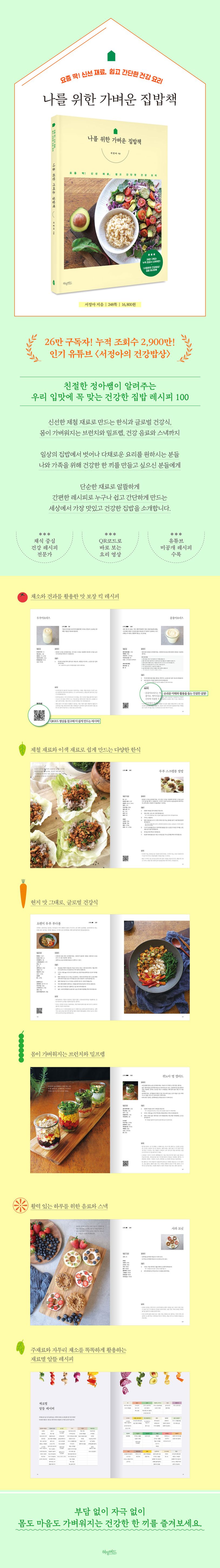 저자의 요리 특징은 단순하다. 적은 재료로 알뜰하게, 간편한 레시피로 누구나 쉽게 만드는 ‘세상에서 가장 맛있고 건강한’ 요리! 이 책을 통해 새로운 집밥의 세계를 만나볼 수 있을 것이다.