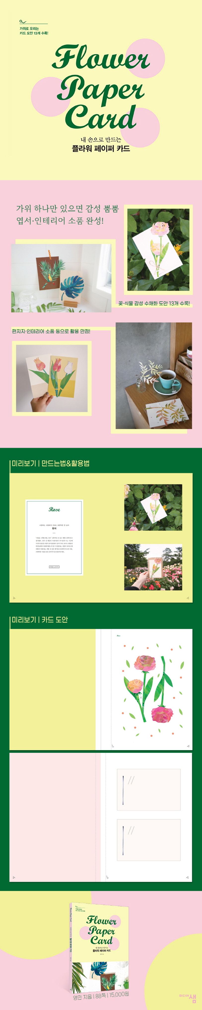 만들기 취미가 열풍이라지만, 늘 결과물을 보관하거나 활용하기 번거로워 책꽂이 깊은 곳에 방치되기 일쑤다. 《내 손으로 만드는 플라워 페이퍼 카드》에서는 내 손으로 만든 플라워 카드를 인테리어 소품이나 엽서로 활용할 수 있도록 가이드한다. 검은 도화지를 오려 만드는 페이퍼 아트가 아닌 감성이 묻어나는 수채 그림으로 소품 활용도를 높였다. 시들거나 망가질까 걱정되어 꽃을 이용한 소품 구매를 망설였다면, 시들지 않는 종이꽃과 종이식물들을 만들어보는 것은 어떨까?