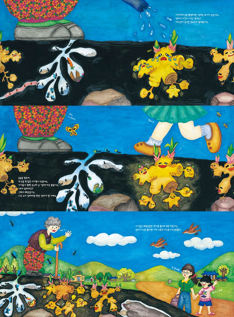 땅속에 던져진 씨앗은 어느 것이나 마찬가지다. 스스로 싹을 틔우고 뿌리를 내리지 않으면 썩어 버릴 것이다. 어린 생강은 이리저리 손을 뻗으며 어둠과 외로움을 이겨낸다.