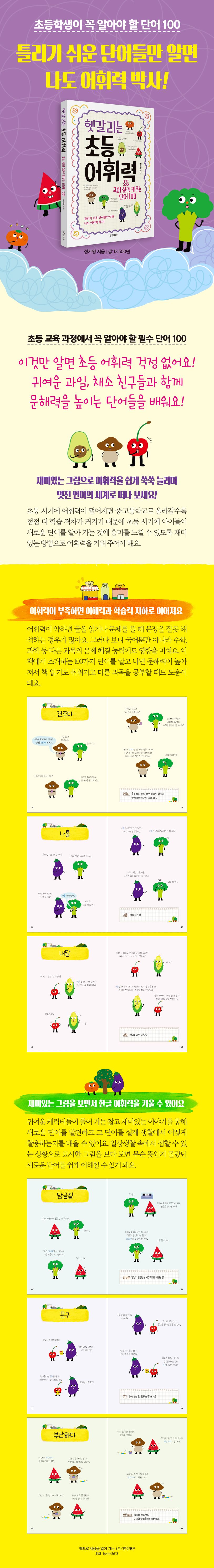어휘력은 단순히 단어를 아는 것뿐만 아니라 그 단어가 가지고 있는 의미를 어떻게 표현할지 아는 능력이에요. 어휘력은 말하거나 글을 쓸 때 매우 중요한 역할을 해요. 아는 단어가 많으면 생각을 더 정확하고 풍부하게 표현할 수 있어요. 이 책에서는 귀여운 캐릭터들이 풀어 가는 짧고 재미있는 이야기를 통해 새로운 단어를 발견하고 그 단어를 실제 생활에서 어떻게 활용하는지를 배울 수 있어요.