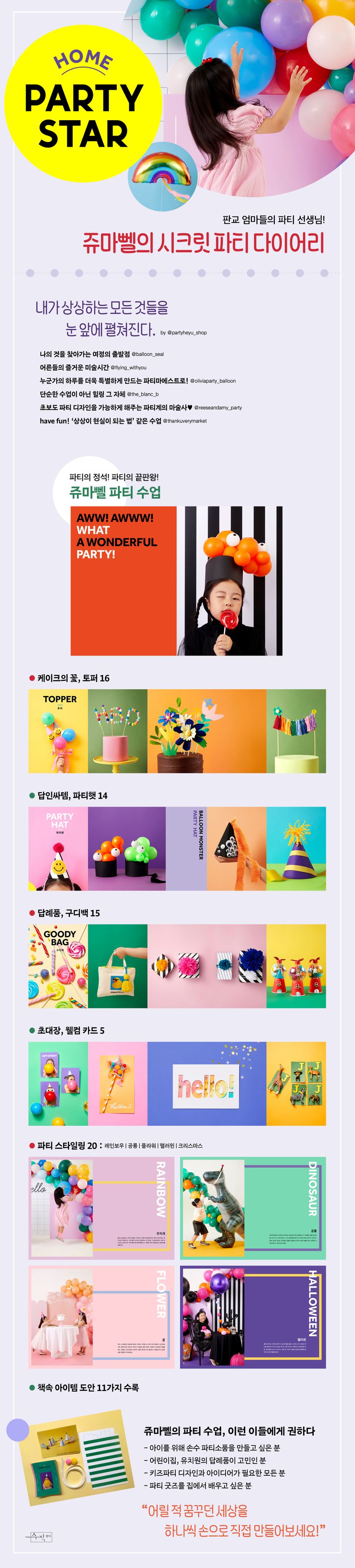 쥬마뻴 파티 클래스의 인기 아이템을 포함해 아이를 위한 것들 위주로 구성했습니다. 아이와 함께 하기에 좋은 내용도 많으니 놀이 시간으로도 활용해보세요.