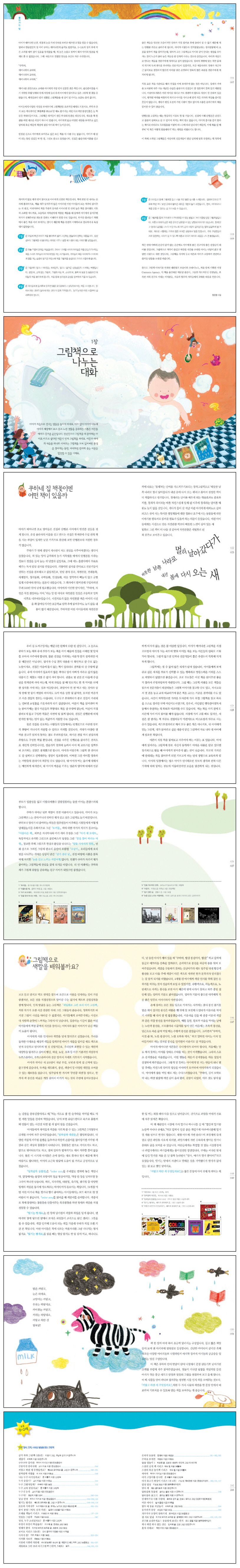 아이가 읽을 책은 부모가 먼저 잘 살펴보고 선택해 주는 정성이 필요하다. 따라서 아이가 태어나면 부모 역시 아이가 크는 속도에 맞춰 그림책을 직접 고를 수 있는 안목을 키워가야 한다. 이 책은 책으로 소통하는 가족을 이루기 위한 부모들의 역할에 대해 아낌없이 조언한다. 부록으로 저자가 직접 작성한 ‘0~7세 아이를 위한 추천 그림책 목록’을 수록해 참고가 되도록 했다.