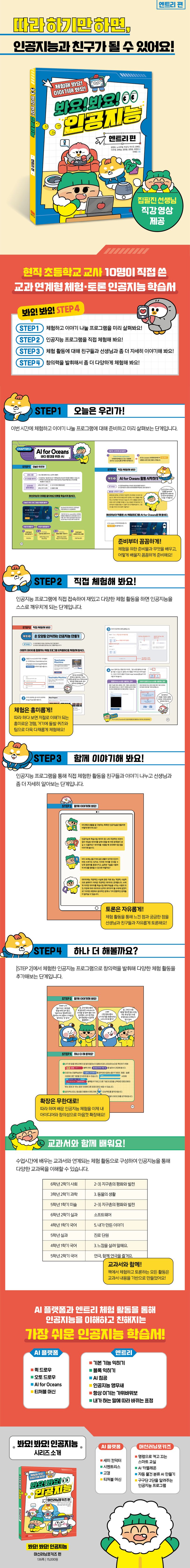 들어본 적은 있지만 멀게만 느껴지고 어렵게만 느껴졌던 AI라는 기술을 직접 체험해 보면 서 AI를 보다 쉽게 이해하는 데 도움이 되고자 이 책을 만들었습니다. AI에 대한 어려운 설명보다는 책을 보면서 천천히 따라 하다 보면 어느새 ‘AI가 이런 거구나! 쉽네!’라는 것을 느낄 것입니다. 우리 생활에서도 AI를 쉽게 사용하기 위해 재미있는 AI 세계로 들어가 볼까요?