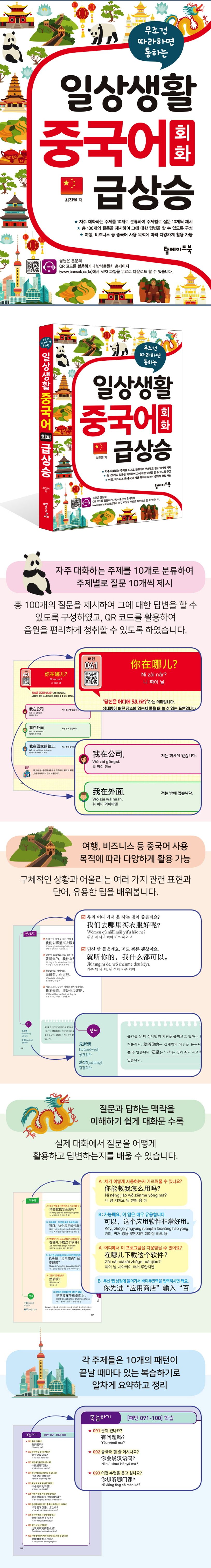 요즈음 중국과의 관계가 예전만큼 좋지 않지만 한국을 방문하는 중국인 관광객들이 늘어나면서 한중교류가 조금씩 회복되는 것 같아 그나마 다행이라고 생각합니다. 한중관계 때문에 많은 산업현장에서 빨간불이 켜졌지만 그럴수록 더 좋은 책을 만들어 독자분들께 보여드려야 한다는 생각이 듭니다. 질문만 잘해도 답을 얻어가는 과정은 쉽지 않을까라는 생각을 많이 해왔습니다. 그런 공식을 중국어에 대입해보면 어떨까라는 생각으로 본 교재를 집필하게 되었습니다. 질문을 잘해야 답도 잘할 수 있습니다. 질문을 잘 알아들어야 정확하게 답변을 할 수 있기 때문입니다.