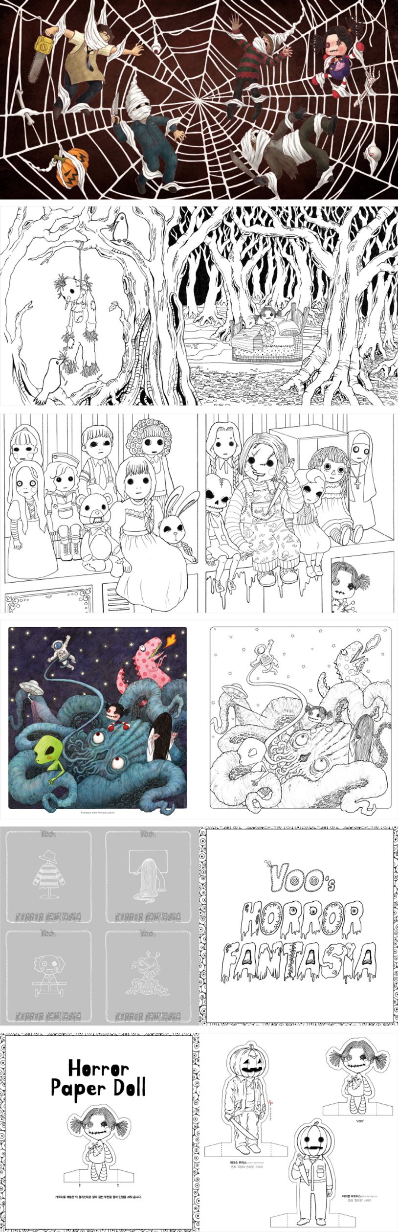 호러 영화와 함께 호흡하고 생활하는 작가 양은봉의 첫 큐티 호러 컬러링북 《Voo’s 호러판타지아》로 당신의 일상을 핏빛 설렘으로 물들여라.