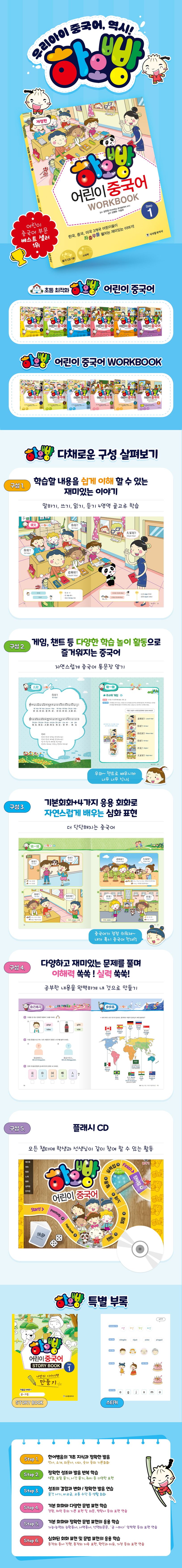 어린이 중국어 교재 『하오빵 어린이 중국어』 워크북 제1권. 메인북에서 배운 중국어 표현들을 다시 한번 점검해 볼 수 있도록 구성되어 있다. 듣고 판단하기, 받아쓰기, 연결하기, 중국어 쓰기, 미로 찾기, 스티커 붙이기 등 다양한 문제 풀이를 실어 보다 재미있게 메인북에서 배운 내용을 복습할 수 있다.
