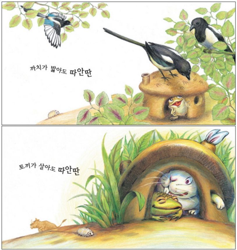 '우리 아기 놀이책' 시리즈, 제16권 『두껍아 두껍아』. 이 시리즈는 자아가 형성되는 중요한 시기인 1세부터 3세까지의 유아가 부모님과 함께 그림책을 보면서 놀이를 통해 신체와 언어, 그리고 인지력을 발달시킬 뿐 아니라, 정서적 유대감을 향상하도록 구성했습니다. 몸 놀이, 말 놀이, 그리고 배움 놀이로 나누어져 있습니다.
