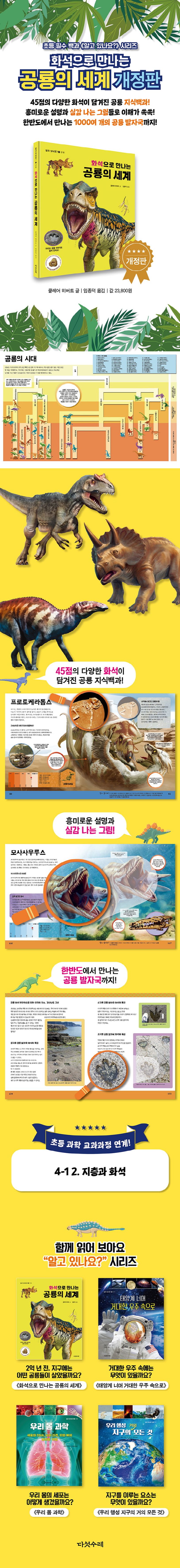 머나먼 과거에 공룡은 어떻게 살았을까? 한때 고대 하늘과 땅과 바다에서 번성했지만 지금은 사라져버린 공룡에 대한 궁금증을 시간의 기억을 품은 화석을 통해 풀 수 있다. 《화석으로 만나는 공룡의 세계》는 전 세계에서 발굴된 화석의 비밀을 파헤쳐 다양한 공룡의 분류와 놀랍고 흥미로운 생태를 알려준다. 모든 책장마다 담긴 생생한 시각 자료는 신비로운 공룡에 대한 아이들의 호기심을 충족시키면서 공룡의 시대를 탐험하며 더 큰 상상력을 발휘하게 할 것이다.