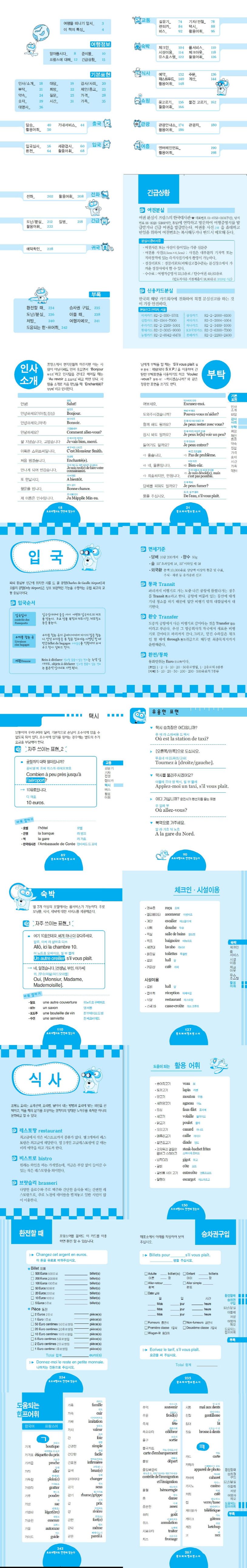 여행의 즐거움을 더하는 상황별 여행팁과 해외 여행에 꼭 필요한 간단하며 정확한 문장들만 콕 찍어 수록한 이 책은 세계 곳곳을 여행한 저자가 다양한 경험과 노하우를 살려 초보 여행자들에게 필요한 프랑스 기초 정보, 입국, 숙박, 식사, 쇼핑 등의 상황들을 나뉘어 필요한 어휘들이 모아 색인으로 사용하기 편하게 만들었다.