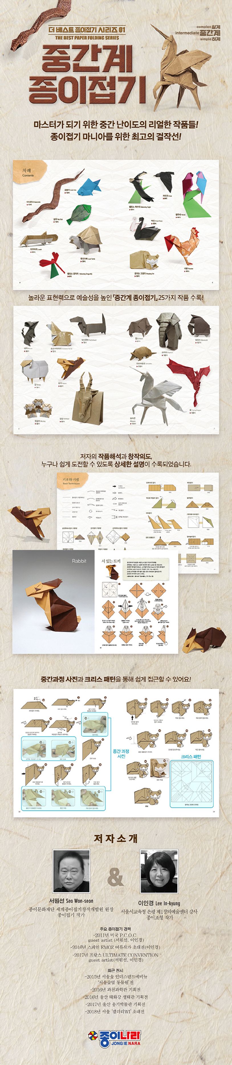 종이접기 마스터가 되기 위한 중간 난이도의 리얼한 작품을 모은 도서로 놀라운 표현력으로 예술성을 높인 작품들에서 종이접기의 진정한 묘미를 느낄 수 있습니다.