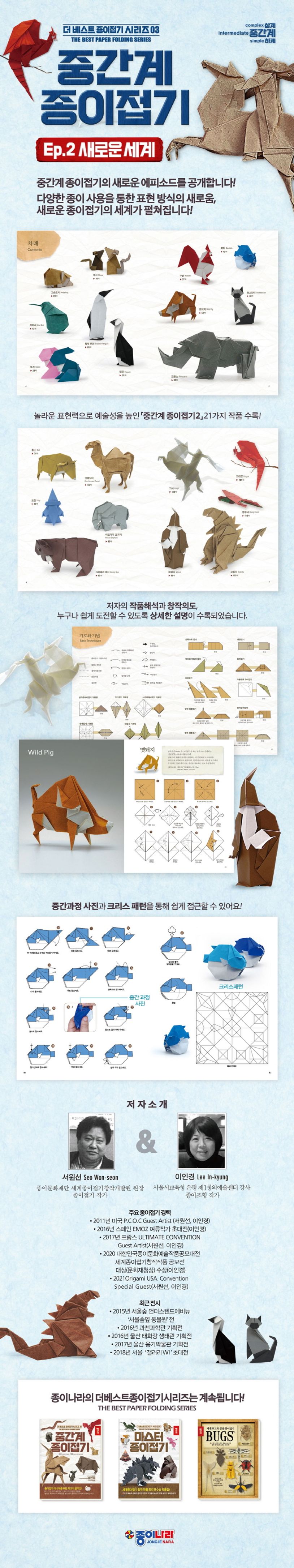 좀더 풍부하고 세심하게 기획된 ‘모험의 지도’를 따라, 새로운 세계, 『중간계 종이접기 Ep. 2』를 마음껏 탐색하시기를 바랍니다. 중간계 종이접기의 모험이 어떠한 결말로 이어질지는 아직 알 수 없지만 그 모험은 무한한 종이접기 창조의 세계로 독자 여러분들을 데려다 줄 것입니다.