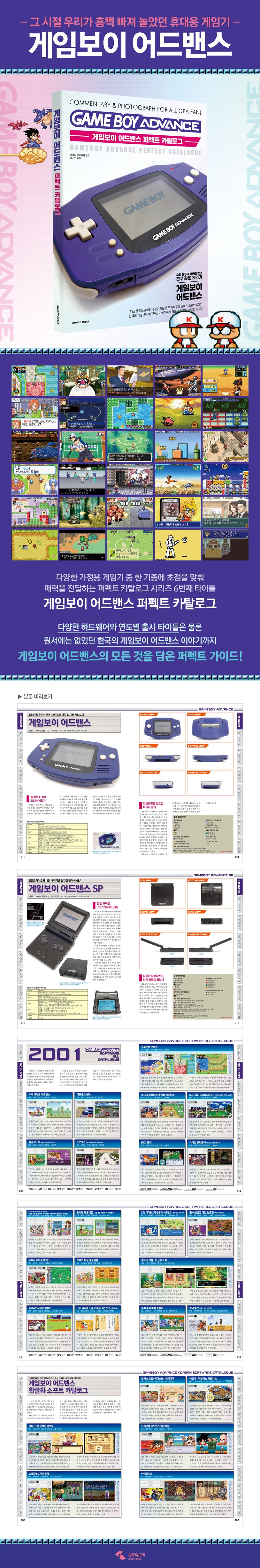 다양한 가정용 게임기 중 한 기종에 초점을 맞춰 매력을 전달하는 《퍼펙트 카탈로그 시리즈》. 시리즈 6번째 타이틀로 게임보이의 후계기인 게임보이 어드밴스가 등장했다. 게임보이 어드밴스는 2001년에 발매되어 32비트 CPU, 32,768색의 컬러 표시, 지금까지의 디자인을 뒤집는 가로형 모양 등으로 다수의 화재를 불러일으킨 휴대용 게임기이다. 이전 게임보이의 인기에 힘입어 발매 초기부터 인기 시리즈물과 신규 타이틀이 적극적으로 발매되었으며 저연령층을 겨냥하여 애니메이션 판권물 타이틀도 많이 발매되었다. 《게임보이 어드밴스 퍼펙트 카탈로그》는 게임보이 어드밴스의 다양한 하드웨어와 주변기기, 791종에 달하는 소프트웨어는 물론, 당시 게임보이 어드밴스의 개발 배경에 대한 흥미로운 에피소드를 담고 있다. 본문 뒷부분에는 도서에 소개된 소프트를 가나다순으로 원제목과 함께 정리하여 정보를 쉽게 찾아볼 수 있게 하였고, 월간 GAMER'Z 수석기자인 조기현 역자가 원작자의 동의를 얻어 최초로 한국의 게임보이 어드밴스 이야기를 집필하여 수록하였다.