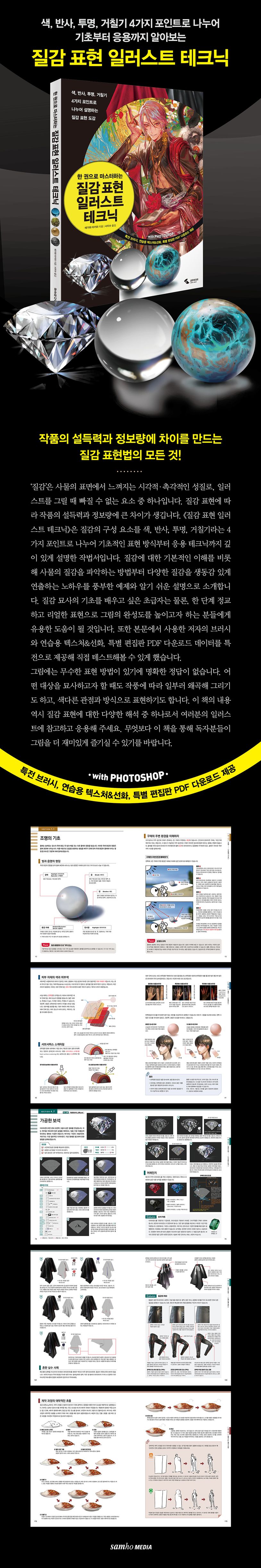 그림에는 무수한 표현 방법이 있기에 명확한 정답이 없습니다. 어떤 대상을 묘사하고자 할 때도 작풍에 따라 일부러 왜곡해 그리기도 하고, 색다른 관점과 방식으로 표현하기도 합니다. 이 책의 내용 역시 질감 표현에 대한 다양한 해석 중 하나로서 여러분의 일러스트에 참고하고 응용해 주세요. 무엇보다 이 책을 통해 독자분들이 그림을 더 재미있게 즐기실 수 있기를 바랍니다.