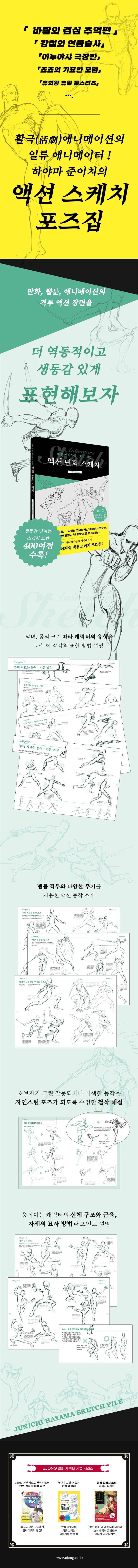 남성과 여성, 거한과 데포르메 등 성별과 몸의 크기에 따라 다른 다양한 캐릭터들의 액션 동작을 러프 스케치와 함께 설명하였습니다. 주먹 지르기나 발차기와 같은 맨몸 액션 동작, 총이나 검, 창, 망치 등의 다양한 무기 아이템을 다루는 액션 동작 등이 실려 있어 다양한 배틀 장면에 적용할만한 자료가 풍부합니다. 이 책을 포즈 자료집으로 활용해서 모사를 해보거나 크로키 연습이나 트레이싱지를 이용해 전사하여 그리는 연습, 또 밑그림으로 이용해 세세한 디테일을 그리는 등, 다양하게 이용해서 그림을 더 생동감 있게 그려보세요.