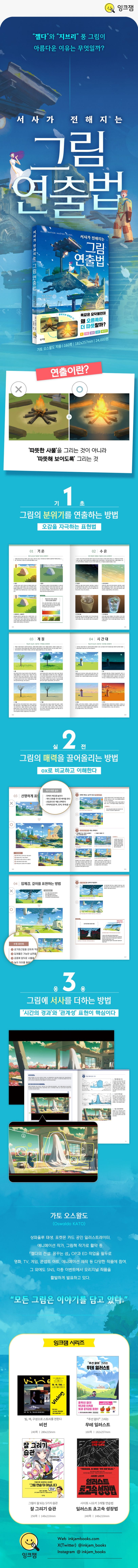 그림이 가진 성질을 독자에게 온전히 느끼게 하려면 ‘무엇을 그릴까’보다 ‘어떻게 그릴까’가 중요하다. 예를 들어 모닥불을 그린다면, ‘따뜻하다’라는 사실보다 ‘따뜻해 보인다’라는 느낌이 중요하다는 말이다. “젤다의 전설”과 “지브리 애니메이션”풍 그림이 아름다운 이유가 바로 여기 있다. 사실보다 사실처럼 보이기 위해선 연출법을 따로 익혀야 한다. 이 책에서 조명 연출, 색상의 사용, 질감 표현, 시선 유도, 구도 등 그림의 연출력을 향상시키는 기술들을 배워 보자.