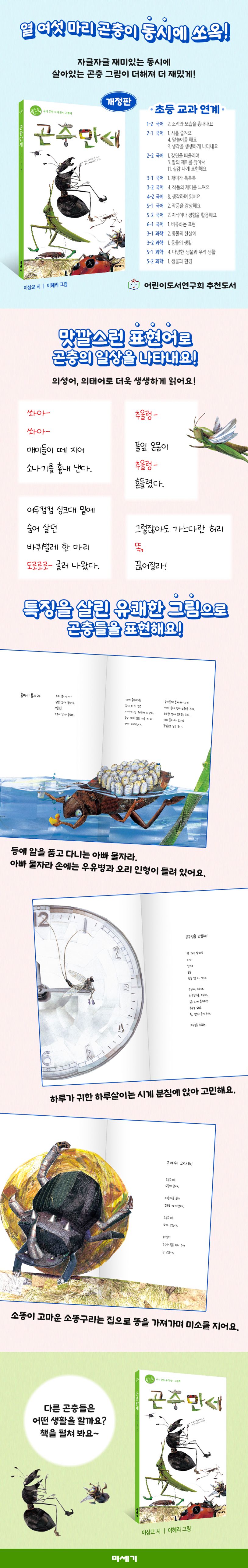 이혜리 화가는 작은 곤충의 특징도 놓치지 않는 섬세함으로, 곤충을 생동감 넘치게 표현했습니다. 독특한 의인화로, 매력적인 콜라주 기법으로 화려하게 표현해 보는 순간 “곤충만세”라는 소리가 나올 만큼 즐거운 시각적 향연이 펼쳐집니다! 곤충의 세계에 풍덩 빠진 그림을 온전히 살리기 위해 이 책은 가로가 무척 얇고 세로가 무척 길쭉한 독특한 판형으로 만들었답니다. 없는 데 없고, 안 가는 데 없는 다양한 곤충들을 우리 동시 우리 그림책 《곤충만세》로 만나 보세요.