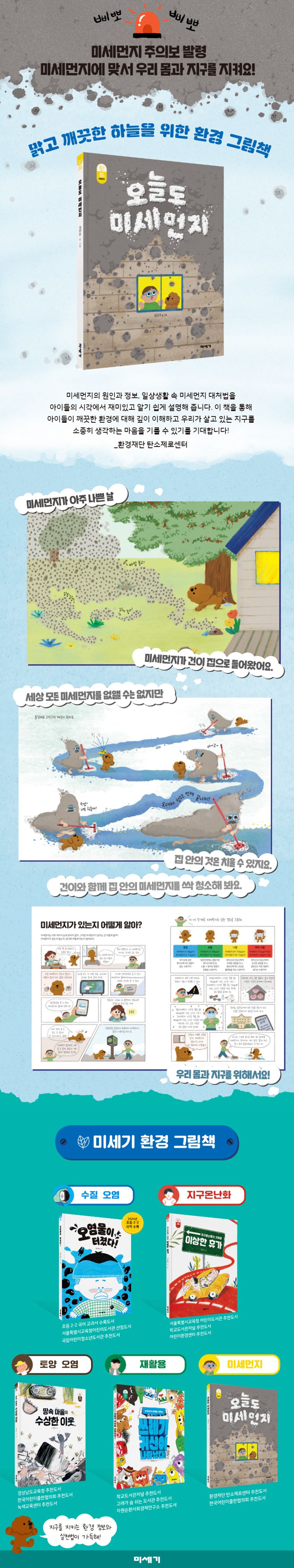 점점 심각해지는 미세먼지 공해 속에서 어떻게 하면 우리 건강과 환경을 지킬 수 있을지 알려 주는 환경 그림책입니다. 흥미진진한 건이와 미세먼지의 이야기를 읽으며, 미세먼지의 원인과 정보, 어린이도 할 수 있는 실천법까지 전부 배울 수 있어요.