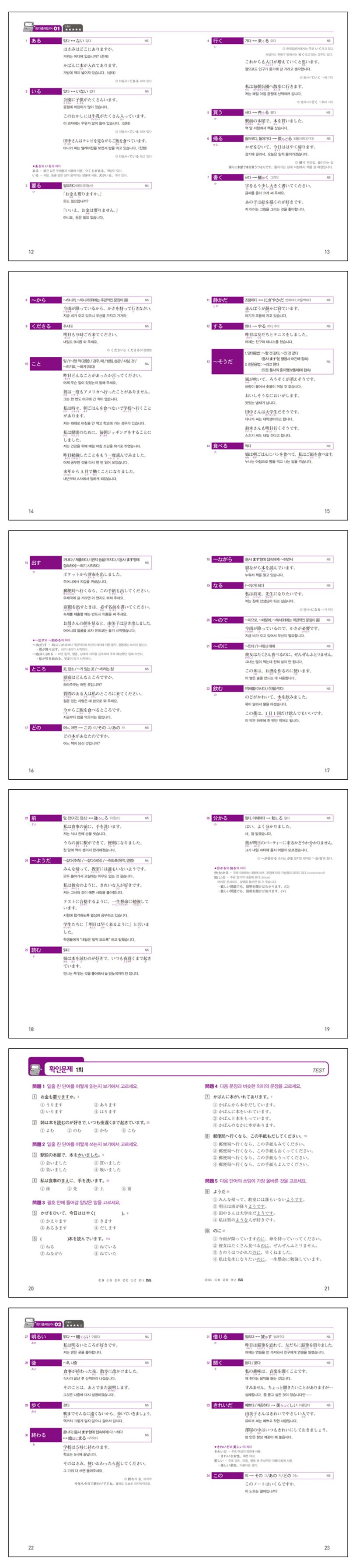 『일본어능력시험 필수단어 이거 하나면 끝! N4 N5』. 이 책은 2010년부터 바뀐 일본어능력시험의 출제 경향에 맞춘 어휘 수험서로, 모든 어휘를 출제빈도순으로 배열하고 급수를 표시하였다. 일본어 일상 회화에도 도움이 되는 어휘들로 구성하였다.