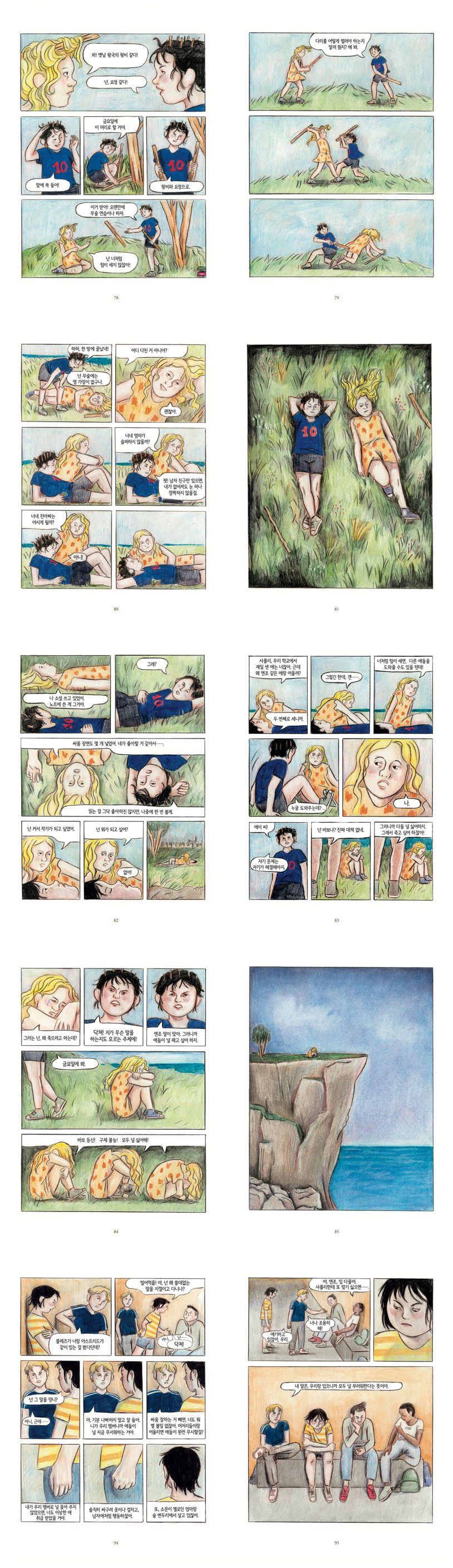 그래픽 노블 『벼랑 끝에서』는 어린 시절이 끝나고 이제 막 사춘기에 들어선 소녀들의 격정적이면서도 위태로운 우정에 관한 이야기입니다.