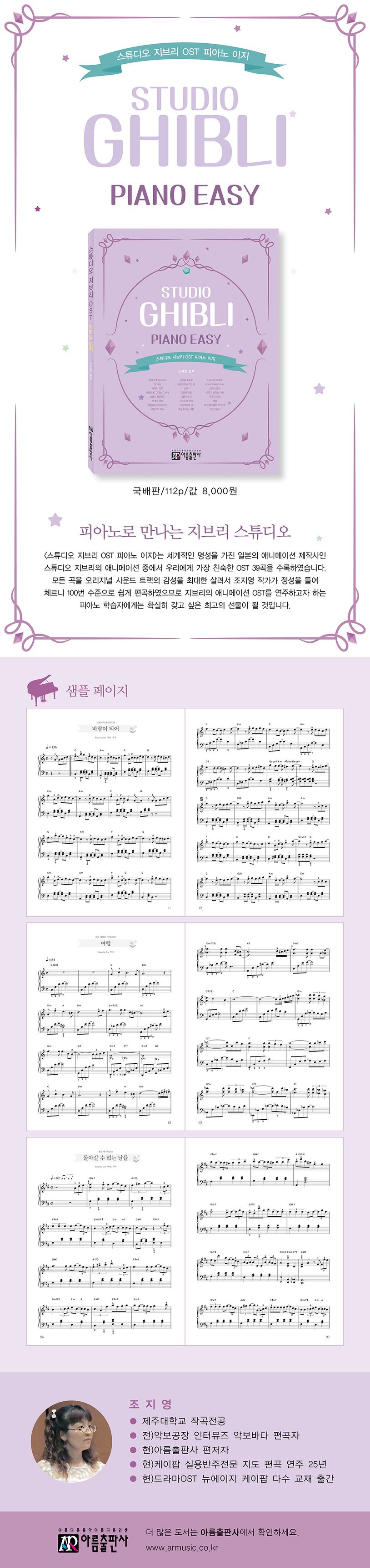〈스튜디오 지브리 OST 피아노 이지〉는 세계적인 명성을 가진 일본의 애니메이션 제작사인 스튜디오 지브리의 애니메이션 중에서 우리에게 가장 친숙한 OST 39곡을 수록하였습니다.