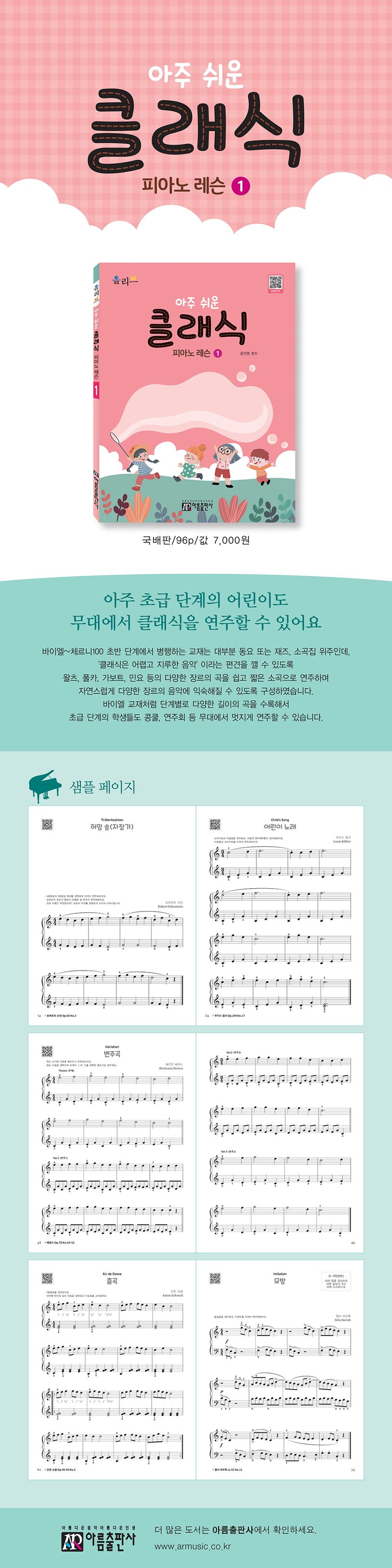 바이엘 교재처럼 단계별로 다양한 길이의 곡을 수록해서 초급 단계의 학생들도 콩쿨, 연주회 등 무대에서 멋지게 연주할 수 있습니다.